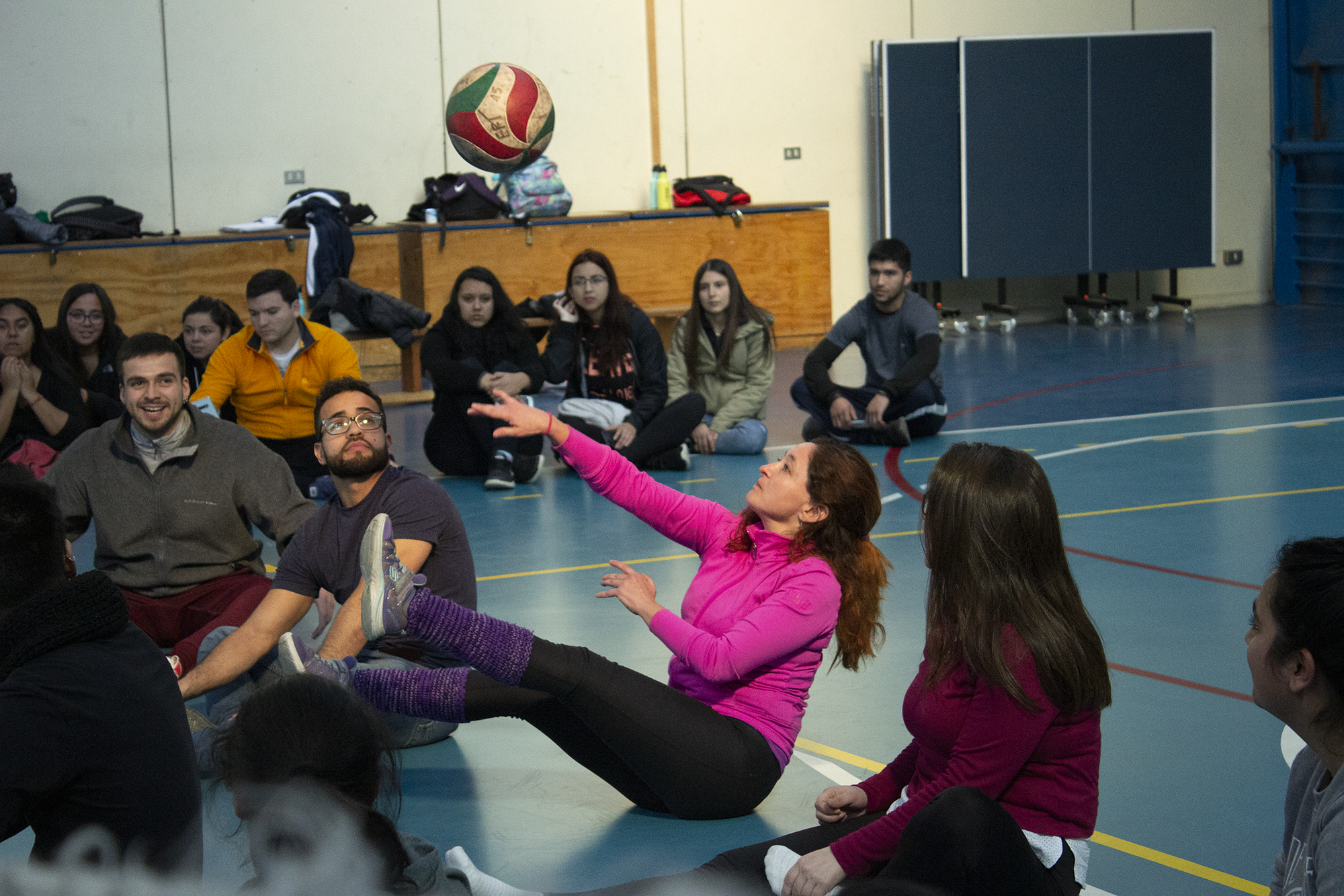 La jornada liderada por el kinesiólogo Freddy Zamora, a cargo de Deporte Inclusivo de la UAIP, consideró un taller práctico de voleibol sentado, variante de la disciplina para deportistas en situación de discapacidad, que los asistentes vivenciaron con el objetivo de acercar y experimentar las limitaciones del cuerpo, posibles de superar mediante el deporte.