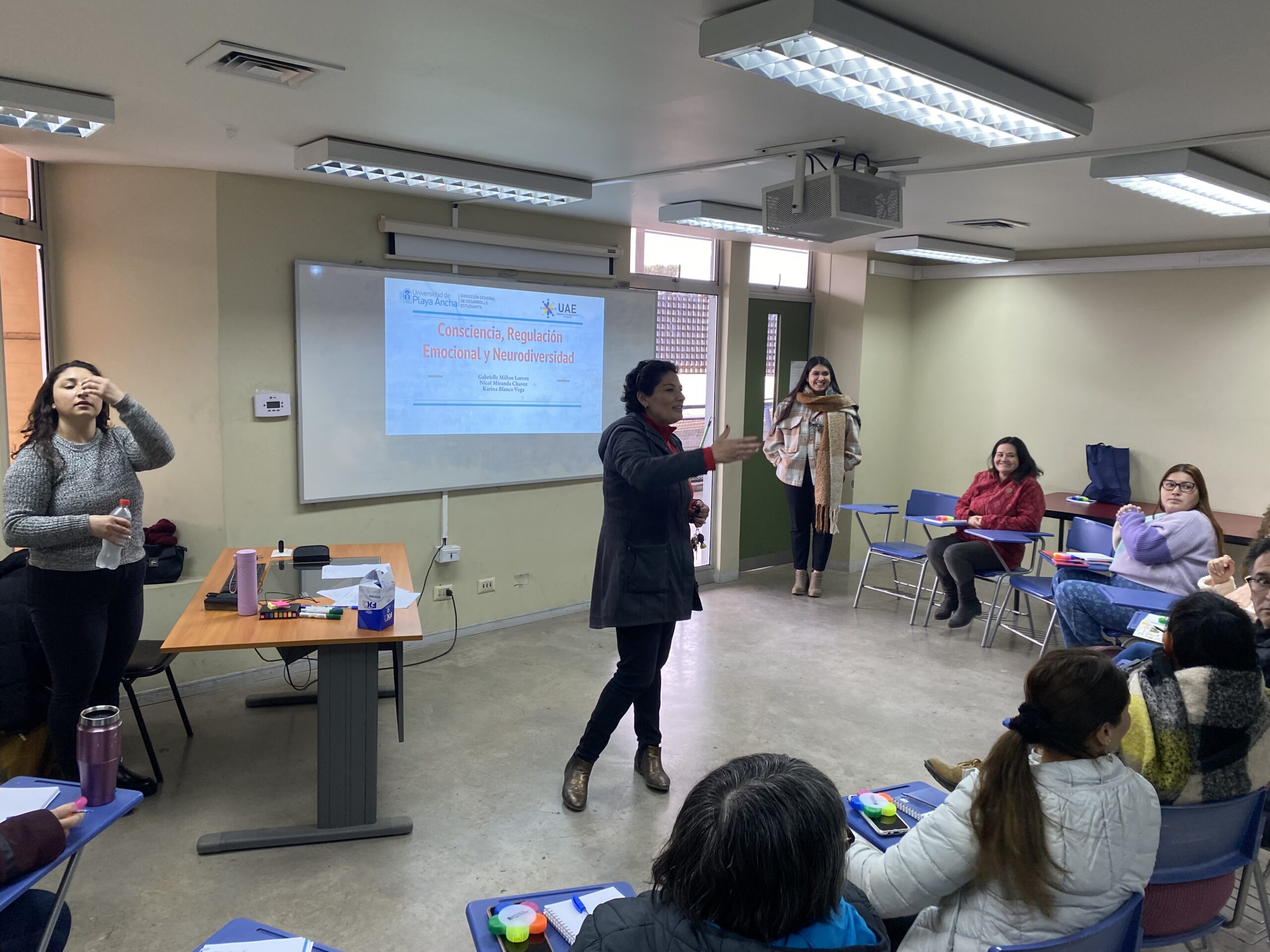 La Dirección General de Desarrollo Estudiantil y la Unidad de Acompañamiento Estudiantil de la Universidad de Playa Ancha, en colaboración con un equipo de expertos en educación y salud mental, realizó el Taller “Conciencia, regulación emocional y neurodiversidad” en el Campus San Felipe, con la participación de funcionarios, académicos y estudiantes.