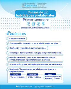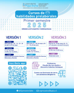 ¿Eres estudiante y estás en tu último año de pregrado? ¿Te sientes preparado para enfrentar el desafío del mundo laboral? La Unidad de Vínculos con la Comunidad Egresada y Empleadores (UVCE), dependiente de la Dirección General de Vinculación con el Medio, te invita a la tercera versión del ciclo de cursos de habilidades prelaborales.