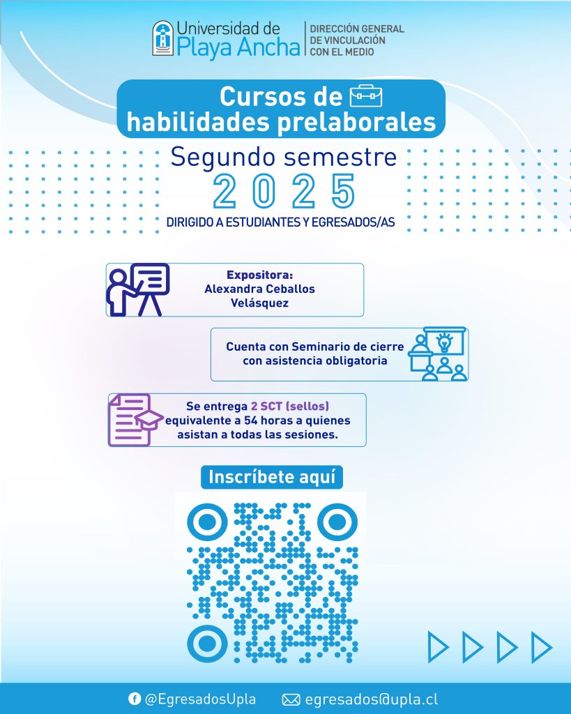 La Unidad de Vínculos con la Comunidad Egresada y Empleadores te invita a la segunda versión del Curso de Habilidades Prelaborales.