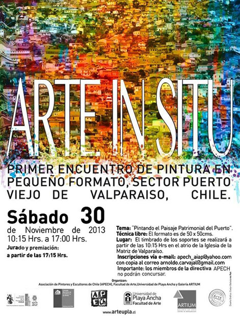 Con el propósito de fomentar la difusión del arte y la cultura en la comunidad e incentivar la creación y el encuentro de sus artistas se realizará en Valparaíso el Primer Encuentro de Pintura In Situ en Pequeño Formato denominado “Pintando el Paisaje Patrimonial del Puerto” en el atrio y alrededores de la Iglesia La Matriz de la Ciudad Puerto.