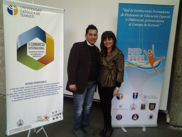 Andrés-Jil-y-Marisela-Vera_coordinadores-docentes-de-diferencialEn la Universidad Católica de Temuco, los días 27 y 28 de agosto, se llevó a cabo el II Congreso Internacional “Educación sin Fronteras: Inclusión para el aprendizaje”, organizado por la Red de Instituciones Formadoras de Profesores de Educación Especial o Diferencial de las universidades pertenecientes al CRUCH (RED IFPEE).