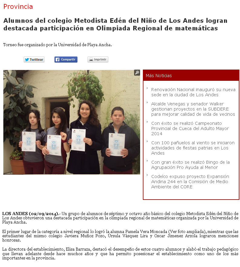 Alumnos-del-colegio-Metodista-Edén-del-Niño-de-Los-Andes-logran-destacada-participación-en-Olimpiada-Regional-de-matemáticasFuente: Los Andes on line, publicado el 2 de septiembre de 2014.