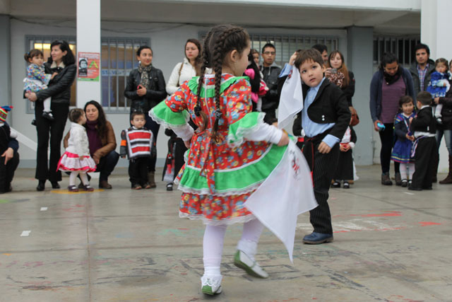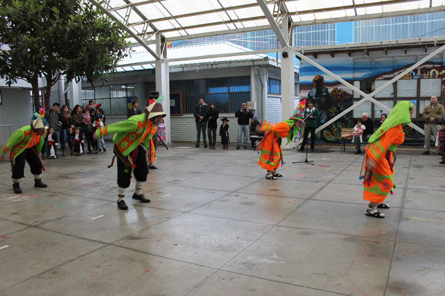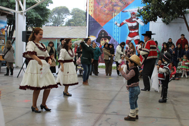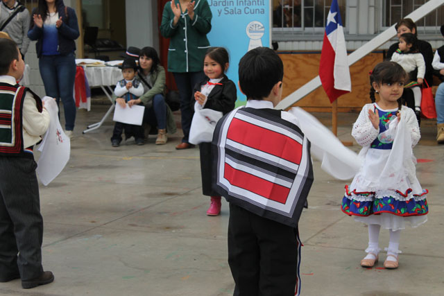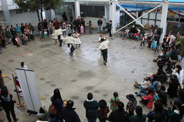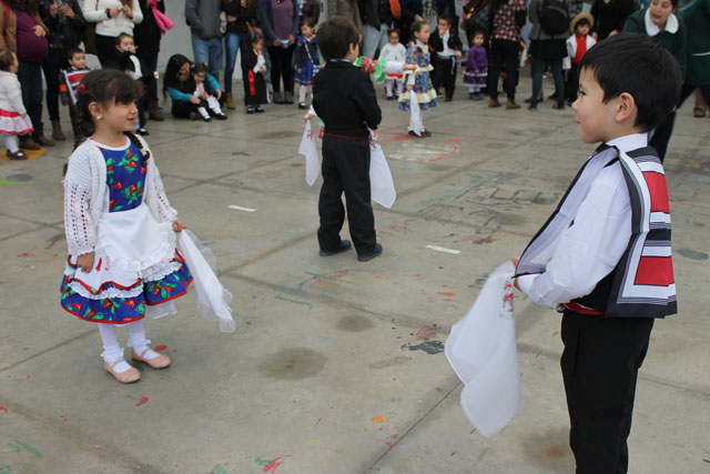 Los asistentes al Patio Techado fueron testigos de la alegría y el desplante de niños y niñas del Ciclo de Transición 1 que bailaron un pie de cueca y que acompañaron a los miembros de Munkun Ayelén, en medio de los aplausos de la concurrencia.