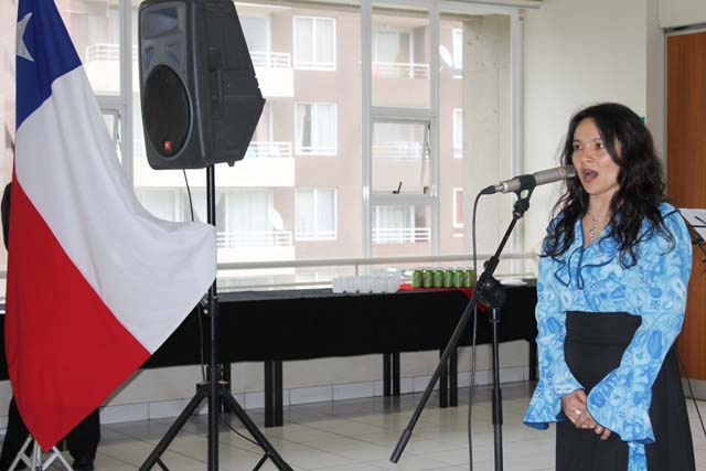 Con la interpretación del Himno Nacional a cargo de la funcionaria del Departamento de Presupuesto, Lorena Álvarez Apablaza, la comunidad universitaria celebró el inicio de las Fiestas Patrias.