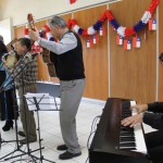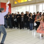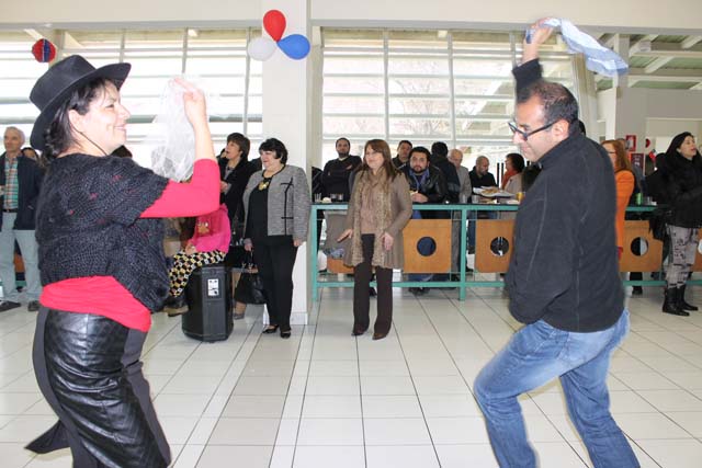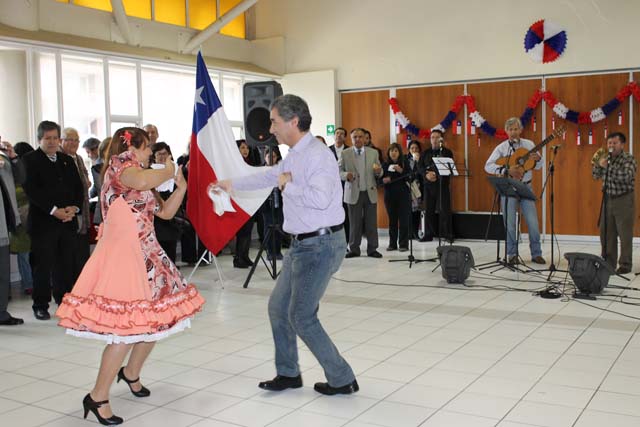 El casino institucional fue el lugar que acogió a funcionarios, académicos y autoridades y que sirvió de escenario para la presentación artística de los profesores de la Facultad de Arte Alberto Teichelmann, Carlos Núñez Salinas, Manuel Chamorro Torres y Carlos Hernández Silva, quienes brindaron un repertorio de cuecas que hizo bailar hasta a los más reticentes.