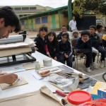 De manera simultánea el profesor Daniel Lagos desarrolló una clase de grabado que dio cuenta del paso a paso para elaborar una xilografía y llegar a la obra final: una estampa con prensa in situ.