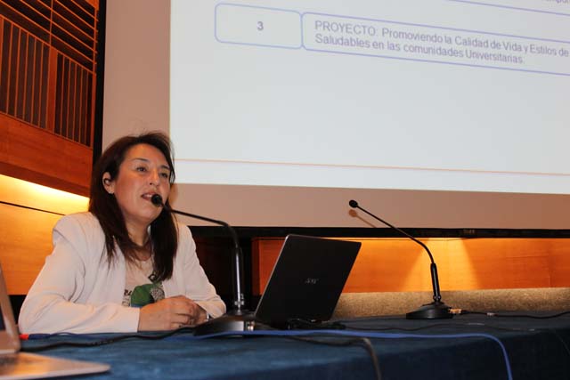 La Dra. Verónica Pastén Valenzuela, coordinadora del proyecto FDI “Promoviendo la Calidad de Vida y Estilos de Vida Saludables en las Comunidades Universitarias” se refirió a la importancia del trabajo colaborativo en las organizaciones.