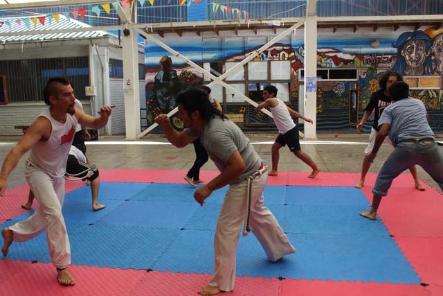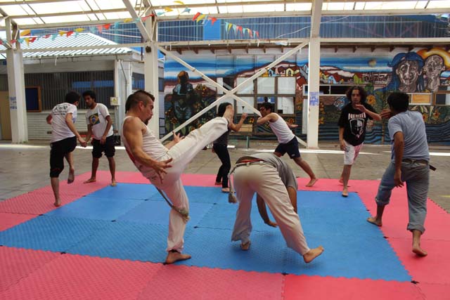 La actividad se realiza todos los lunes y viernes en el Patio Techado y es dirigida por el profesor Cristián Gutiérrez, quien entrega los fundamentos básicos de la capoeira.