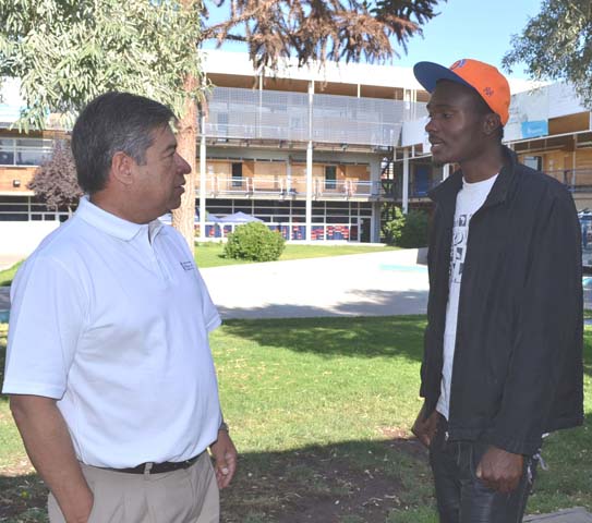 El joven haitiano fue recibido en el Campus San Felipe por el vicerrector Oscar Valenzuela y el Director Académico Eduardo Lazcano, quienes le dieron la bienvenida a la universidad y le desearon un exitoso rendimiento académico.