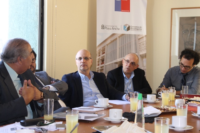 Diego Ambasz y Javier Botero, funcionarios del Banco Mundial, junto a representantes del MECESUP, revisaron en la UPLA las acciones comprometidas y alcanzadas por el convenio que busca generar cambios sustantivos en la formación de profesores, mediante procesos formativos de excelencia, para impactar en el rendimiento escolar y fortalecimiento social de las comunidades educativas.