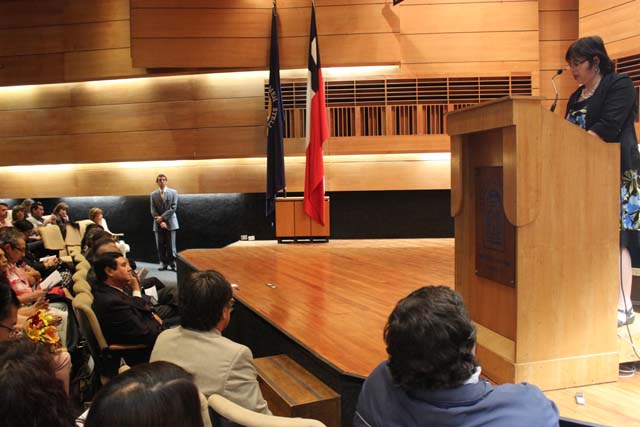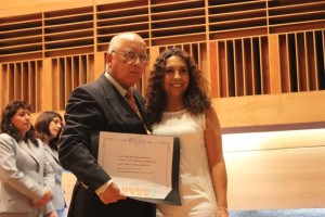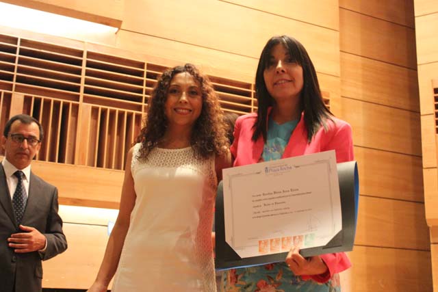 Posteriormente, Giovanna Aracena Estay del Magíster en Creación de Ambientes Propicios para el Aprendizaje mención Convivencia Escolar, hizo presente -a nombre de todos los graduados- el reto que tienen como profesionales en pos de realizar aportes significativos en el área de la educación en nuestra sociedad.