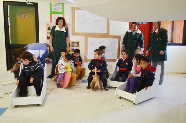 donacion_jardin_estudiantes_arteupla1Ocho caballitos de madera, cinco carros de traslado y ochos sillas especiales para atriles con estantes, fue la importante donación que los estudiantes del Taller de Madera de la carrera de Pedagogía en Educación Tecnológica de la Universidad de Playa Ancha hicieron al jardín infantil “Bambi”, ubicado en el cerro Cordillera de Valparaíso.