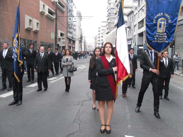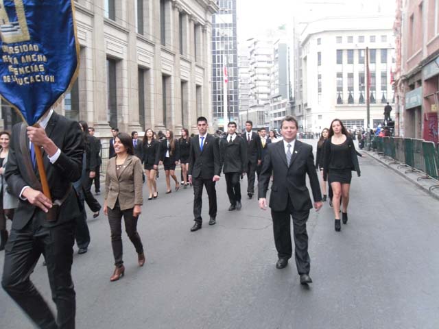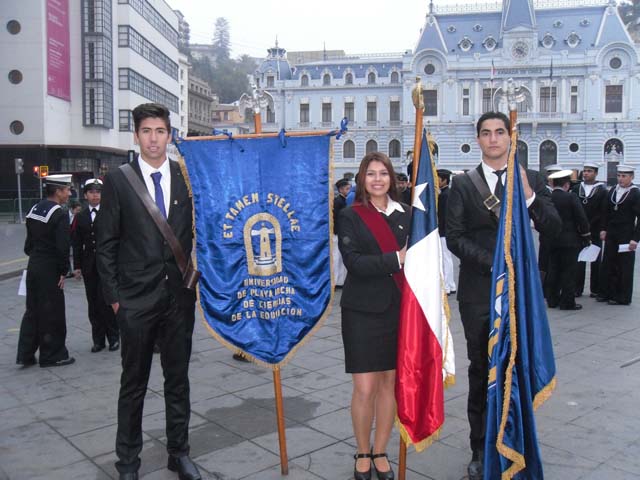 Tras depositar la ofrenda floral a los pies del Monumento a los Héroes de Iquique, se inició el desfile que contó con la participación de una delegación de 40 personas (entre docentes y estudiantes) de la Facultad de Ciencias de la Actividad Física y del Deporte.