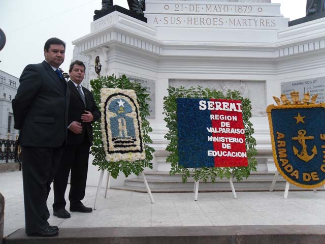 A nombre de la UPLA y en representación del rector Patricio Sanhueza Vivanco, hizo entrega de la ofrenda floral el decano de la Facultad de Ciencias de la Actividad Física y del Deporte, Dr. Cesar Oliva Aravena, acompañado del profesor de la misma facultad, Alejandro Adana Abril.
