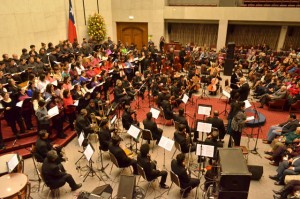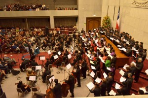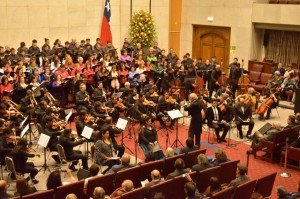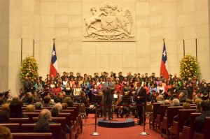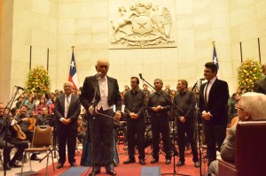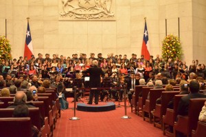 El concierto homenaje, organizado por la Cámara de Diputados y distintas instituciones educacionales, municipales y corales de la región, reunió en la sede legislativa a integrantes de los coros de las universidades de Playa Ancha, de Valparaíso, Santa María, de Santiago, Coro Jubilate, Coro Comunitario; y los solistas Maureen Marambio (soprano), Ximena Soto (contralto) Sergio Járlaz (tenor) y Sergio Gómez (bajo).