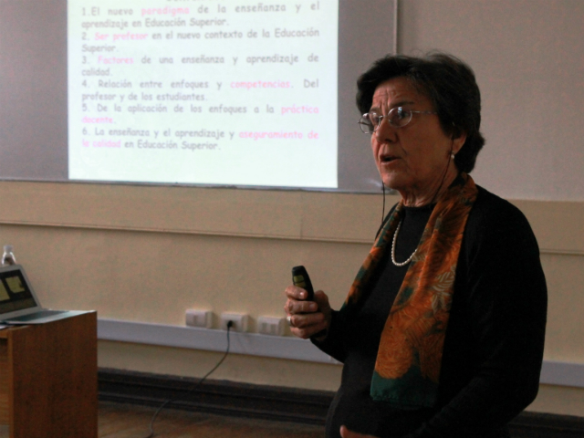 La experta en métodos de investigación, evaluación, acreditación y diagnóstico en educación superior, compartió su experiencia de 4 décadas en aula con el fin de apoyar a los profesores en el tránsito desde el saber al saber hacer.