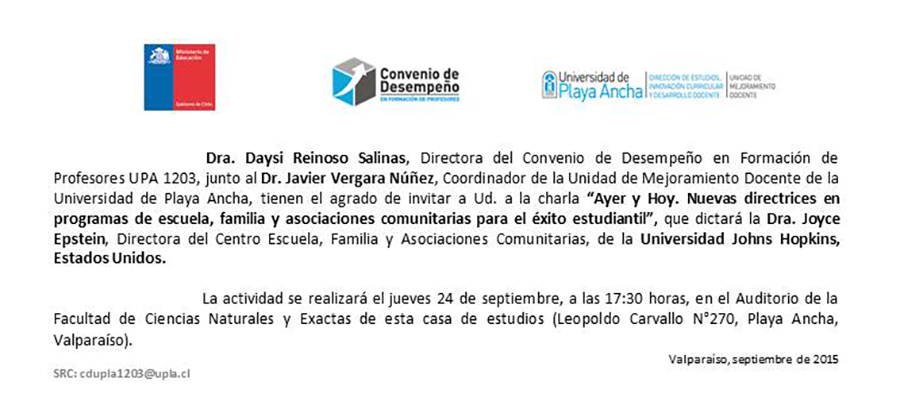24 de septiembre: Charla de la Dra. Joyce Epstein