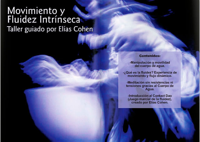 En el taller se abordará la “Manipulación y movilidad del cuerpo de agua”, “¿Qué es la fluidez? Experiencia de movimiento y flujo dinámico”, “Meditación sin resistencias ni tensiones gracias al cuerpo del agua” e “Introducción al Contact Dao” (juego marcial de la fluidez), creado por Elías Cohen.