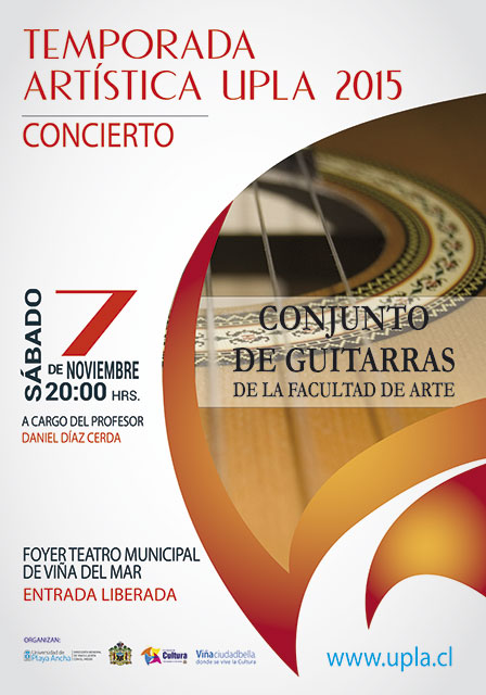 afiche_conjguitarras_foyertmvLa Temporada Artística de la Universidad de Playa Ancha continúa con la presentación del Conjunto de Guitarras de la Facultad de Arte, a cargo del profesor Daniel Díaz Cerda.