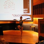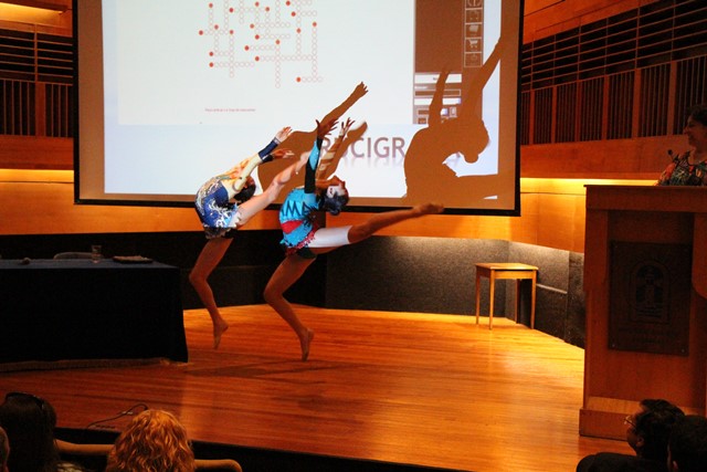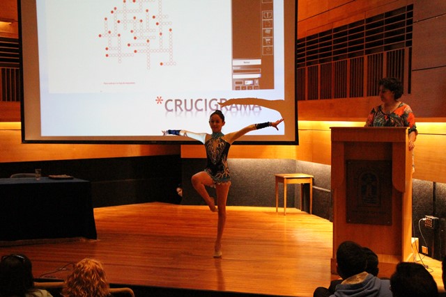 En la presentación del libro, la autora ejemplificó los elementos corporales básicos de la disciplina con gimnastas que ejecutaron los movimientos.