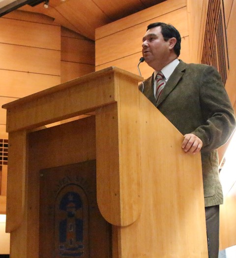 Frente a autoridades, docentes, estudiantes, entrenadores y familiares, el decano de la Facultad de Ciencias de la Actividad Física y del Deporte, César Oliva Aravena, destacó el doble valor de la obra de la Dra.