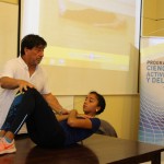 Agregó que los profesionales deben entender que los movimientos son desarrollados por las articulaciones. “Eso es lo básico, asimilando ese concepto se comienza la descripción de los ejercicios, por ejemplo aquí yo no estoy doblando las piernas estoy flexionando las rodillas”, comenta mientras desarrolla dicho ejercicio.