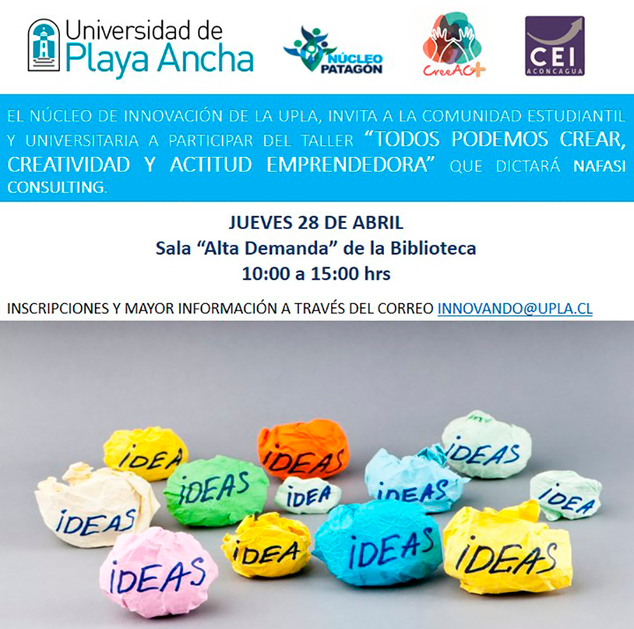 28 de abril: Taller «Todos podemos crear creatividad y actitud emprendedora»