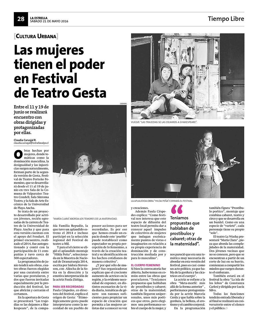 Fuente: Diario La Estrella de Valparaíso, página 28, publicado el 21 de mayo de 2016.