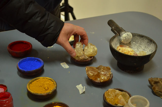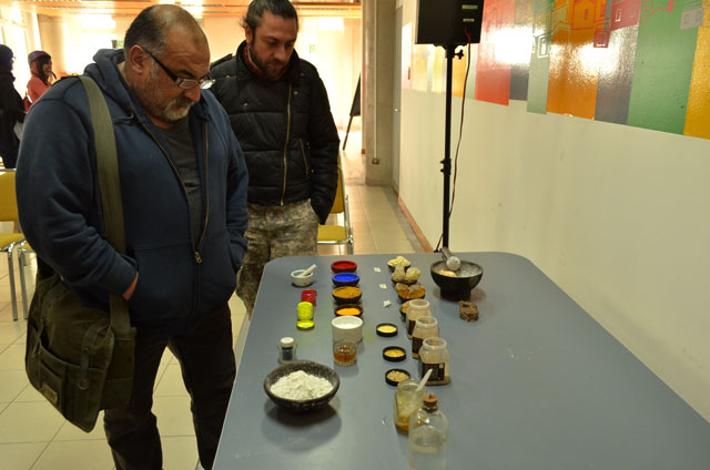 “Lo que hicimos fue hacer un repaso de la química de los materiales, de cómo el simbolismo en la construcción de una obra se va desarrollando a partir de esa exploración química, y que eso finalmente resulte en un proceso técnico de trabajo. Para ello tomamos algunas anécdotas de artistas como Antonio Palomino y Francisco Pacheco, y de sus trabajos de taller para ir introduciendo a los asistentes en los temas que estábamos explorando”, dijo.
