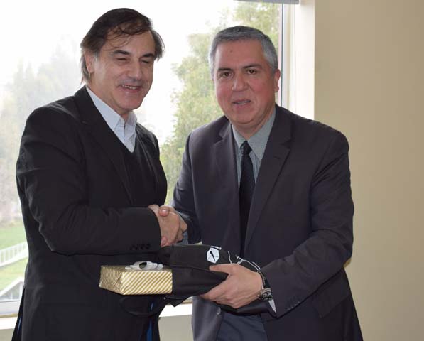 Los doctores de la Universidad de Milán, Italia, y de la Universidad de la República, Uruguay, Laura Scarabelli y Ricardo Viscardi, respectivamente, fueron recibidos protocolarmente por el director general de Relaciones Internacionales de la Universidad de Playa Ancha, Dr. José Manuel Olivares, previo a la presentación del número especial de la revista “Otras Modernidades”, coeditada en esta oportunidad por la UPLA y la universidad italiana.
