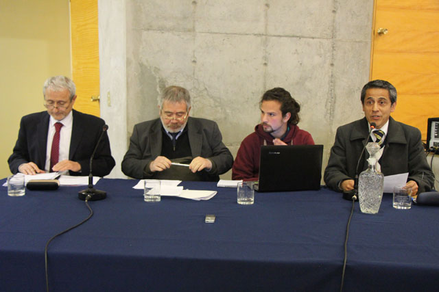 En el primer panel participaron el rector de la Universidad de Santiago de Chile, Juan Manuel Zolezzi; el presidente de la Federación de Académicos de Universidades Estatales de Chile (FAUECH), Carlos Gómez; y la presidenta de la Federación de Estudiantes de la Universidad de Chile, Camila Rojas.