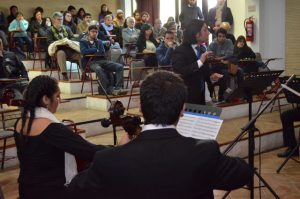 La agrupación de estilo docto interpretó, en el auditorio de la Facultad de Arte, un repertorio basado en melodías de distintos compositores que abarcó desde el periodo Barroco al Romanticismo. De esta forma, su presentación incluyó piezas de Georg Friedrich Händel (Sarabanda), de Edvard Grieg (Dos melodías elegíacas, Opus 34), de Wolfgang Amadeus Mozart (Divertimento K-137) y de Jean Sibelius (Vals Triste).