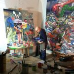 La muestra, compuesta por pinturas, acuarelas, instalaciones y videos, es el resultado de la residencia que el destacado artista visual porteño desarrolló por 30 días en la sala de exposiciones, periodo que en compañía de estudiantes de las asignaturas que imparte transformó este espacio en taller pedagógico de arte para producir las obras que serán expuestas.