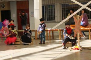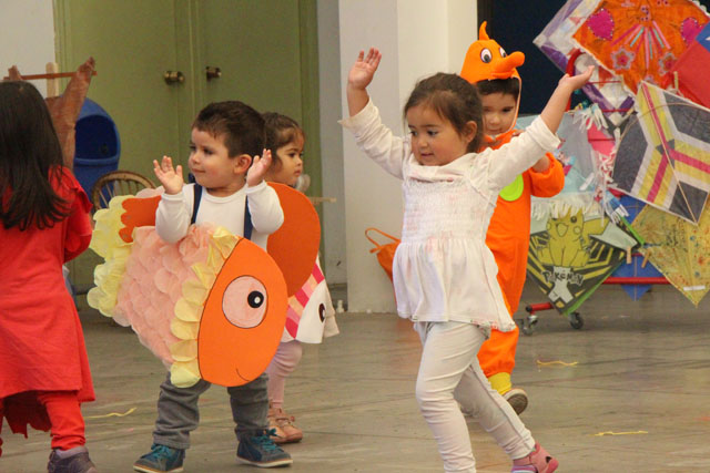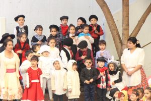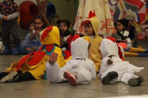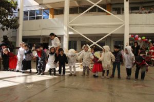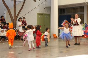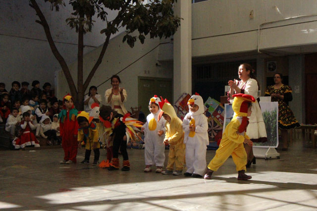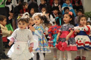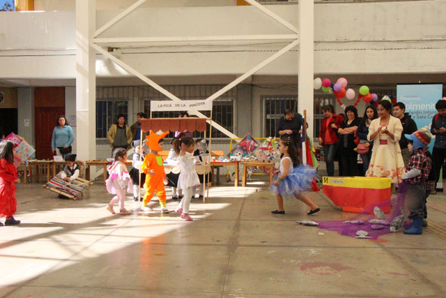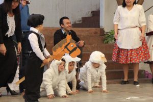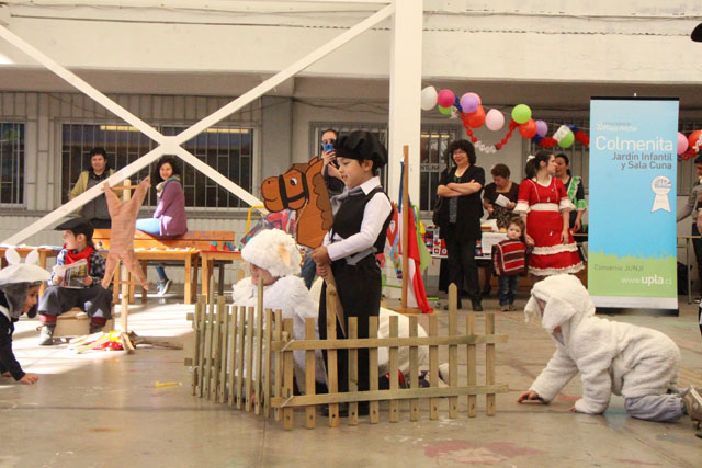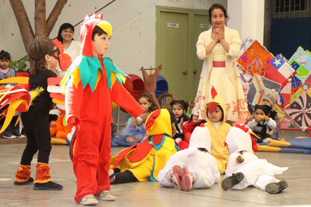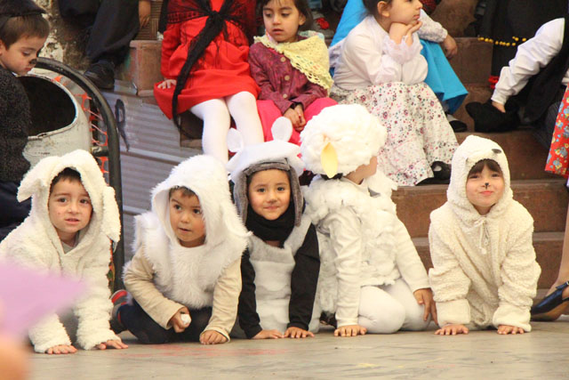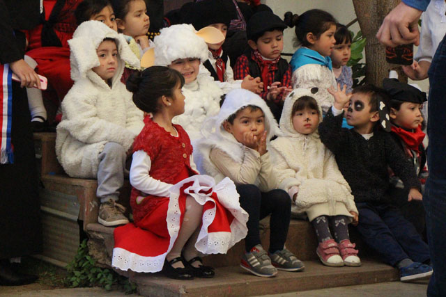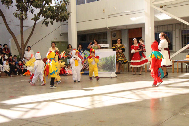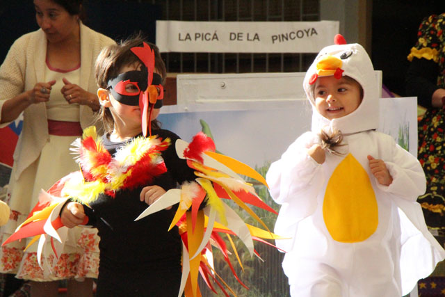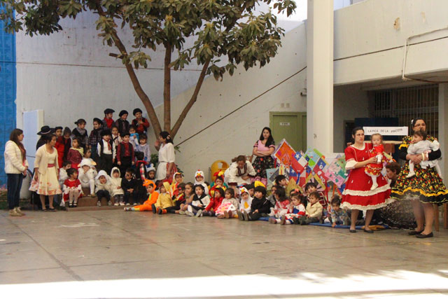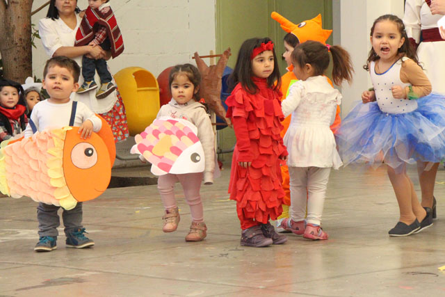Caracterizados de huasos, chinas, gauchos, arrieros y de distintos animalitos, los niños y niñas del jardín Colmenita mostraron toda su gracia y alegría en los números artísticos realizados en el marco de la Fiesta Costumbrista que dio término a las celebraciones del Mes de la Patria.