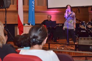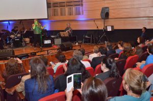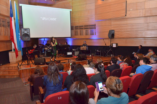 upla_canta_02De esta forma, llegaron hasta el recinto universitario una gran cantidad de académicos, funcionarios y estudiantes, liderados por el rector UPLA Patricio Sanhueza, para presenciar la participación de 12 talentos musicales de la universidad que compartieron escenario con las invitadas especiales y estudiantes de Pedagogía en Educación Musical de la Facultad de Arte Daniela Aleuy, Fresia Casas y Carmen Gloria Ramírez.
