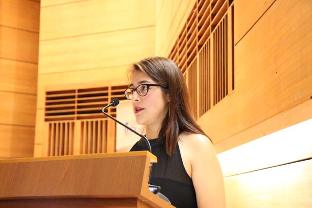 En la ceremonia, que se realizó en el Aula Dr. Félix Morales Pettorino, también saludó a los estudiantes Vania Pinto Valladares, alumna de cuarto año, quien recordó el camino andado para llegar a este momento. “Hemos avanzado mucho, pero ahora debemos mirar hacia el futuro. Trabajaremos por la promoción de los buenos hábitos y las buenas prácticas y debemos hacerlo creyendo en nuestras capacidades y en nuestra formación”, dijo la estudiantes, quien también dirigió sentidas palabras a los familiares presentes, cuyo apoyo –dijo-, ha sido fundamental para lograr las metas.