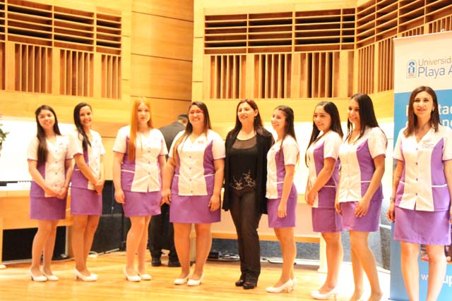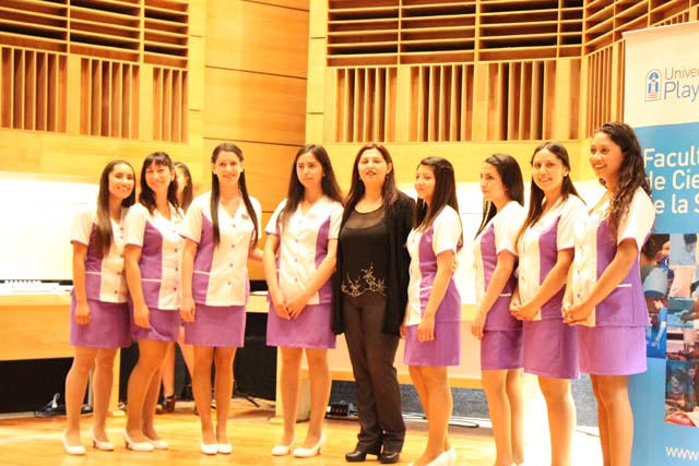 “Espero que no olviden nunca estas palabras:‘quise estudiar nutrición para ayudar a la comunidad, sentenció la académica. Deben recordarlo siempre, porque será el motor de su diario quehacer”, dijo la coordinadora, quien colocó la piocha en los delantales de los estudiantes.