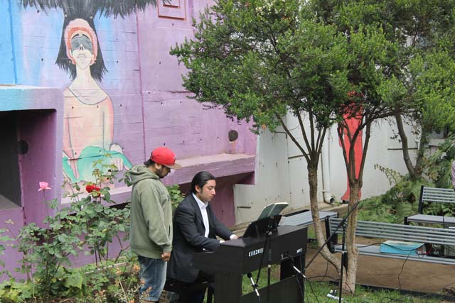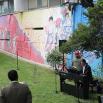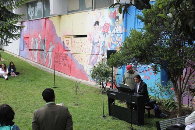 Finalmente, el Día Internacional de los D.D.H.H. concluyó con un acto y discursos en el patio interior de la casa central y un homenaje musical a cargo del académico y pianista de la Facultad de Arte, Nicolás Galaz.