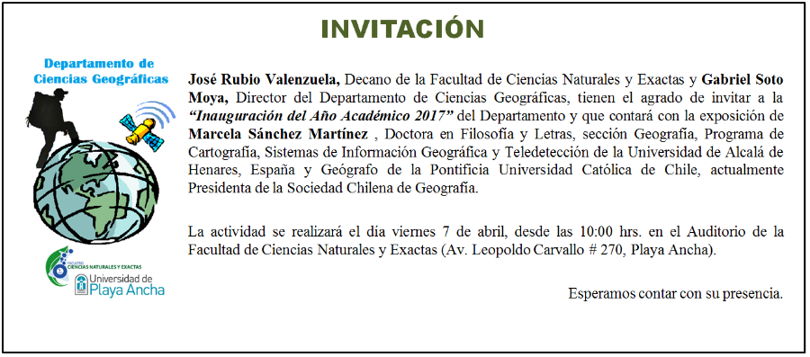 7 de abril: Inauguración de Año Académico del Departamento de Cs. Geográficas