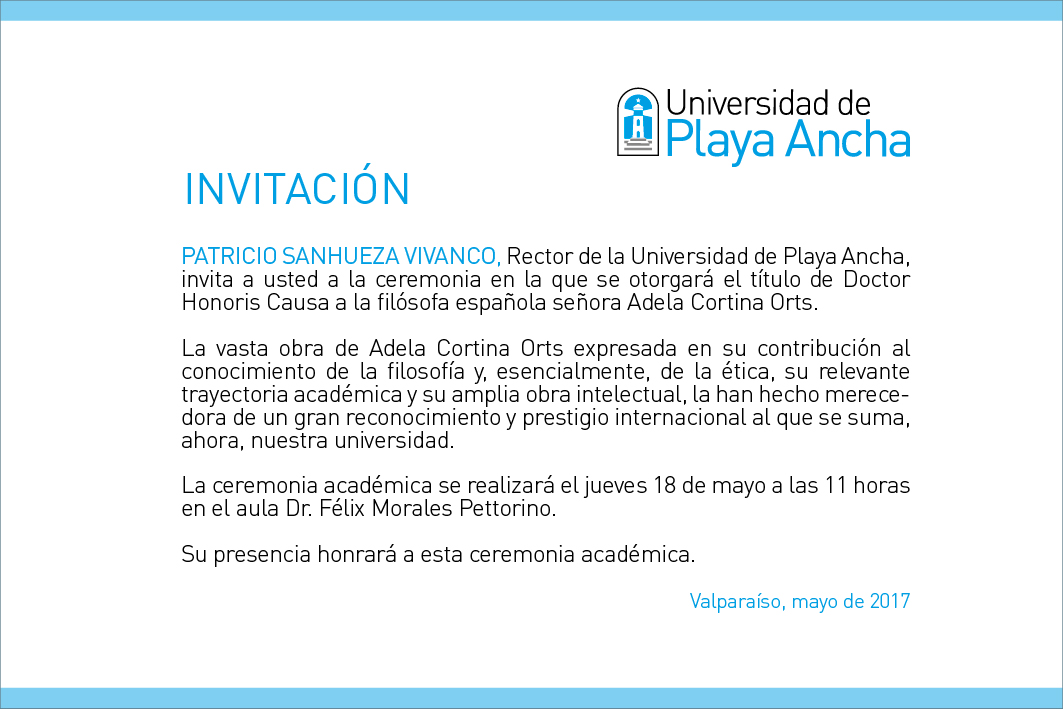 18 de mayo: Acto de investidura con el grado Honoris Causa a filósofa Adela Cortina