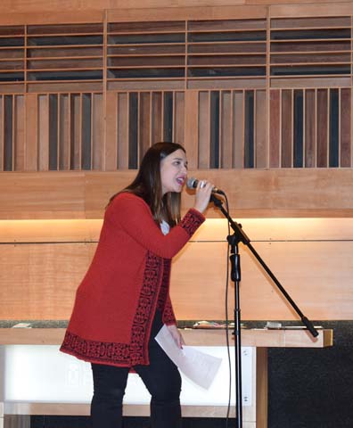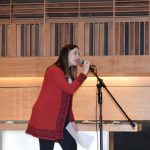 Durante la ceremonia, la funcionaria Loreto Bórquez, de Vicerrectoría de Desarrollo, interpretó canciones populares que fueron aplaudidas por los presentes.