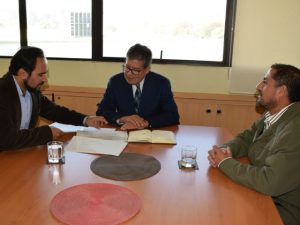 interiorizarse de la iniciativa, el rector Patricio Sanhueza se reunió con los doctores Hernaldo Carrasco y Sergio Fernández, académicos de la Facultad de Ciencias de la Actividad Física y del Deporte e investigadores del Centro de Estudios Avanzados.
