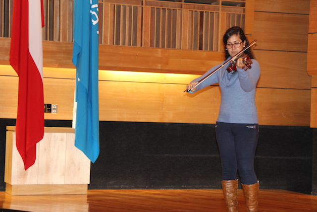 Durante la ceremonia la Educadora de Párvulos titulada de la UPLA, Naara Abisag, al igual como lo hizo cuando era estudiante, compartió temas musicales que interpretó en violín.