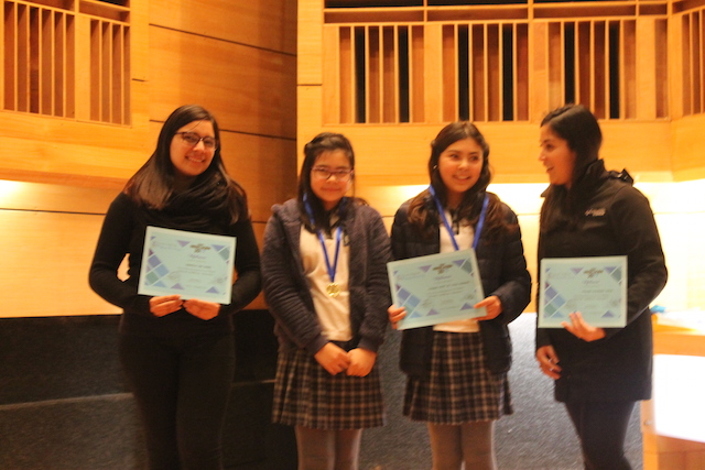 Jhon Olivares 1º medio, Liceo Técnico de Valparaíso: “ha sido una experiencia bonita. Por una parte, aprendo que en la vida cotidiana hay matemática, ángulos, sumas… cosas que nunca esperé que tenían números y letras. Salir delante de toda la gente mientras tu mamá te ve me llena de gozo. Si hay otro proyecto vendré con las mismas ganas a representar a mi liceo”.
