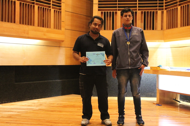Ítalo Ahumada, 1º Medio Liceo Técnico de Valparaíso: “estaba nervioso, pero aprendimos harta teoría de todo esto. Con mis compañeros fuimos sacando la cara por el liceo. Es un gusto venir a la UPLA a presentar nuestro trabajo”.