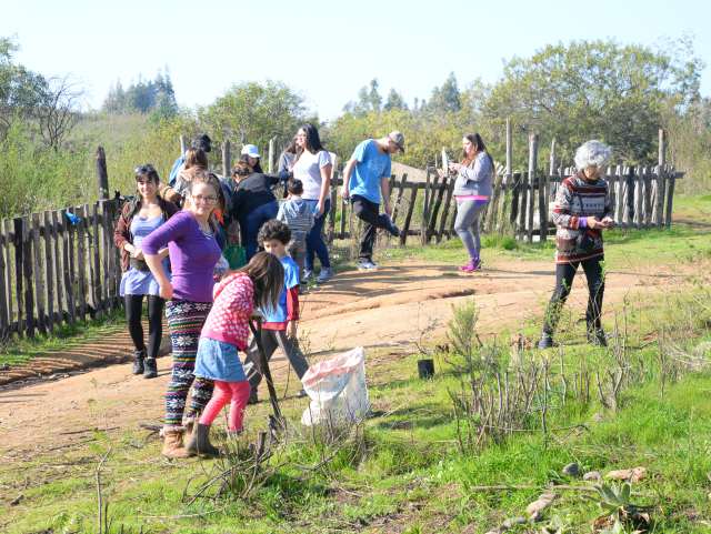 La jornada de reforestación fue la ocasión propicia para que tanto alumnos como los habitantes del sector compartieran un almuerzo –porotos con rienda- al final de los trabajos, preparado por los propios miembros de las comunidades locales. Fue un momento oportuno, además, para que los pequeños de dos escuelitas alternativas relacionadas con el lugar, aprendieran de los jóvenes y los adultos, el valor de trasplantar y proteger un árbol.