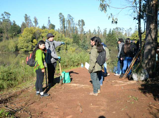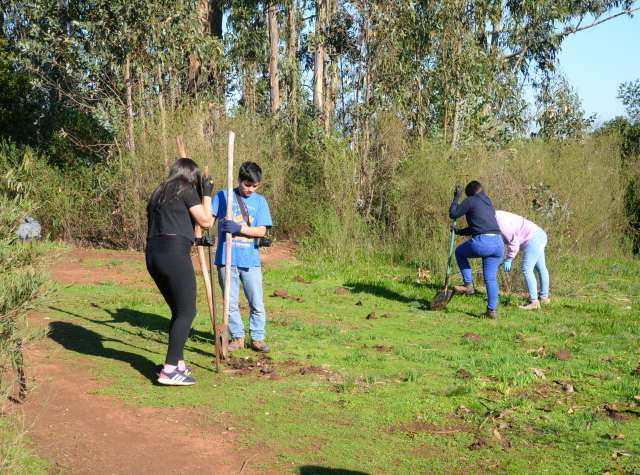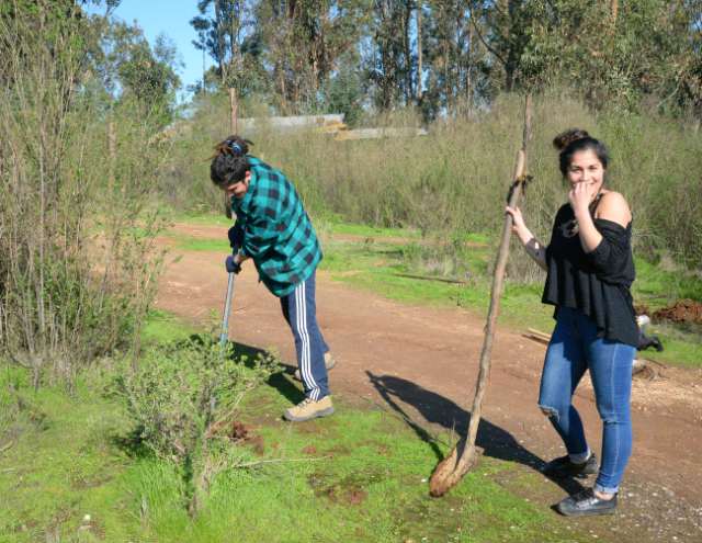 Unos 50 jóvenes, principalmente de primer año de ambas carreras pertenecientes a la Facultad de Ingeniería de la UPLA, fueron recibidos a media semana por una veintena de miembros de las comunidades ecológicas Piuke Ko y Pueblo Libre, para reforestar cuatro áreas circundantes a la laguna, con cerca de 200 especies arbóreas nativas como quillay y maitén, entre otros.