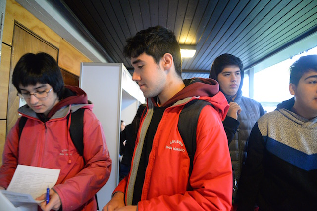 Óscar Llanos Maluenda, 4º Año Medio, Liceo María Luisa Bombal: «Considero que ésta es una muy buena oportunidad para precisar qué es lo que quiero hacer, porque puedo conocer todas las carreras que me podrían interesar, aun cuando tengo preferencia por la Facultad de Arte, porque quiero estudiar teatro».