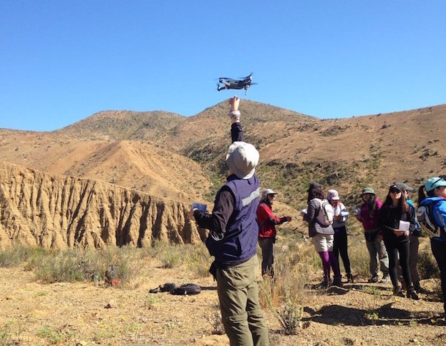Apoyados de un dron, se captó imágenes aéreas de la zona de estudio, acción relevante para las distintas tomas de datos. El centro focal estuvo en las áreas afectadas recientemente por aluviones en el Norte Chico, y en toma de muestras de agua en humedales costeros.
